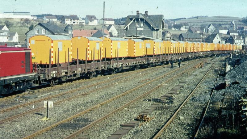 The SÄBU room containers leave the factory and are loaded at Morsbach railway station.