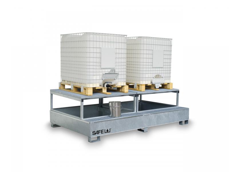 Mega Auffangwanne für zwei Tankcontainer (IBC/KTC) zum sicheren und problemlosen Abfüllen von Gefahrstoffen