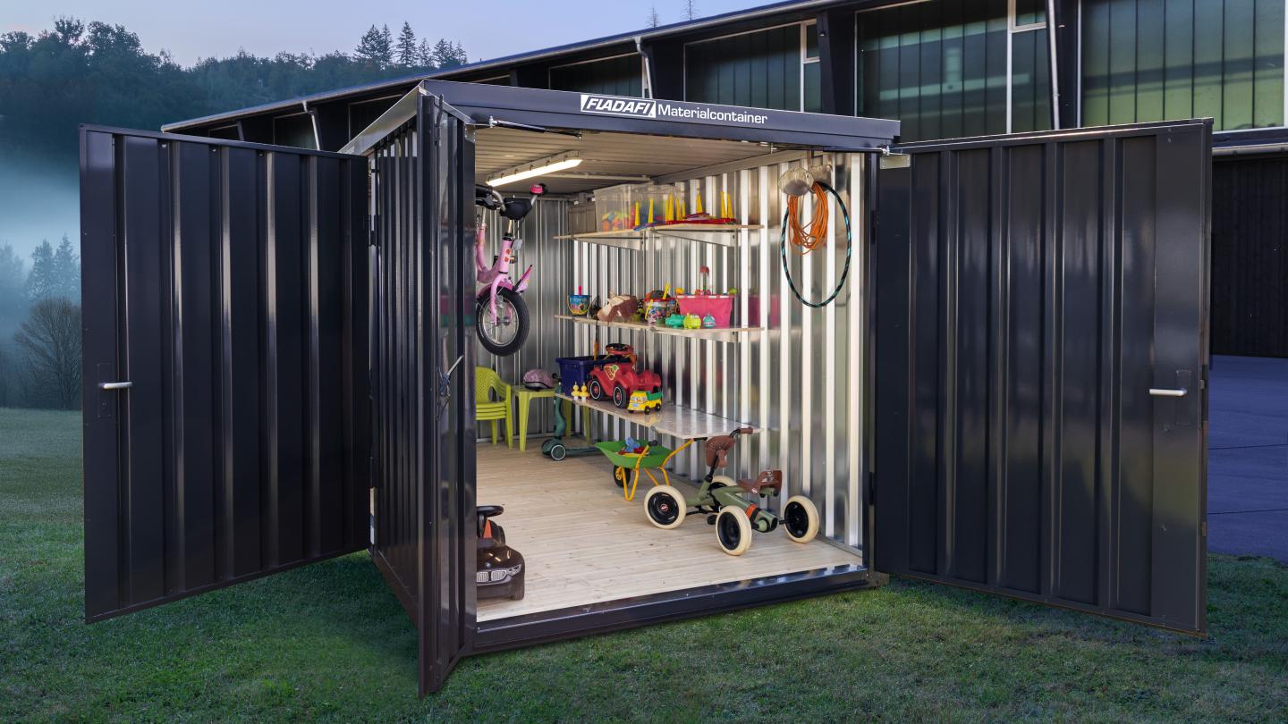 Der Kita-Container von SÄBU schafft schnell zusätzlichen Raum für Spielsachen, Sportgeräte oder Rückzugsorte – und bringt gleichzeitig Ordnung auf das Außengelände. Mit praktischen Extras wird er noch komfortabler: Türfeststeller halten die Türen sicher offen, sodass alles leicht ein- und ausgeräumt werden kann. Die optionale Innenbeleuchtung macht den Container zudem rund um die Uhr nutzbar.